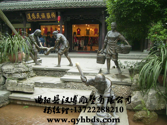洗衣的女人铜雕,景观雕塑