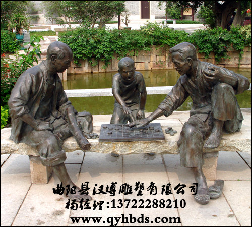 筑棋人物铜雕,景观雕塑