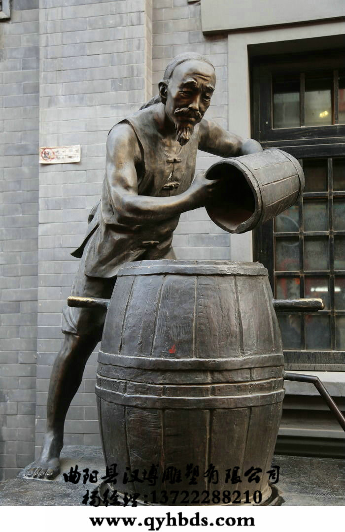 古代倒酒人铜雕,小品铜雕