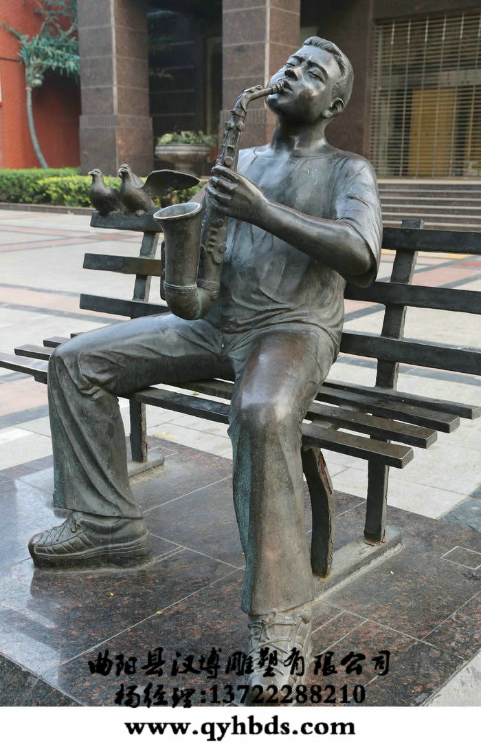 吹哈萨克斯的男孩人物铜雕,景观铜雕