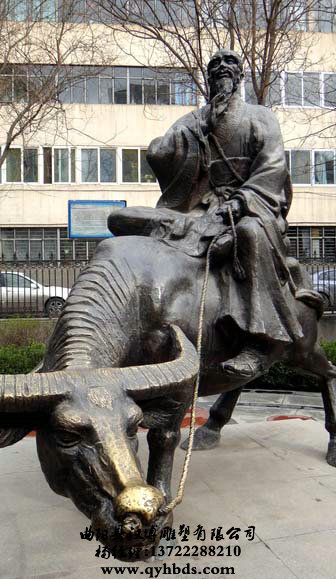古代人物骑牛园林雕塑