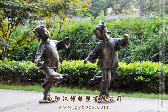 公园小孩踢毽子人物雕塑