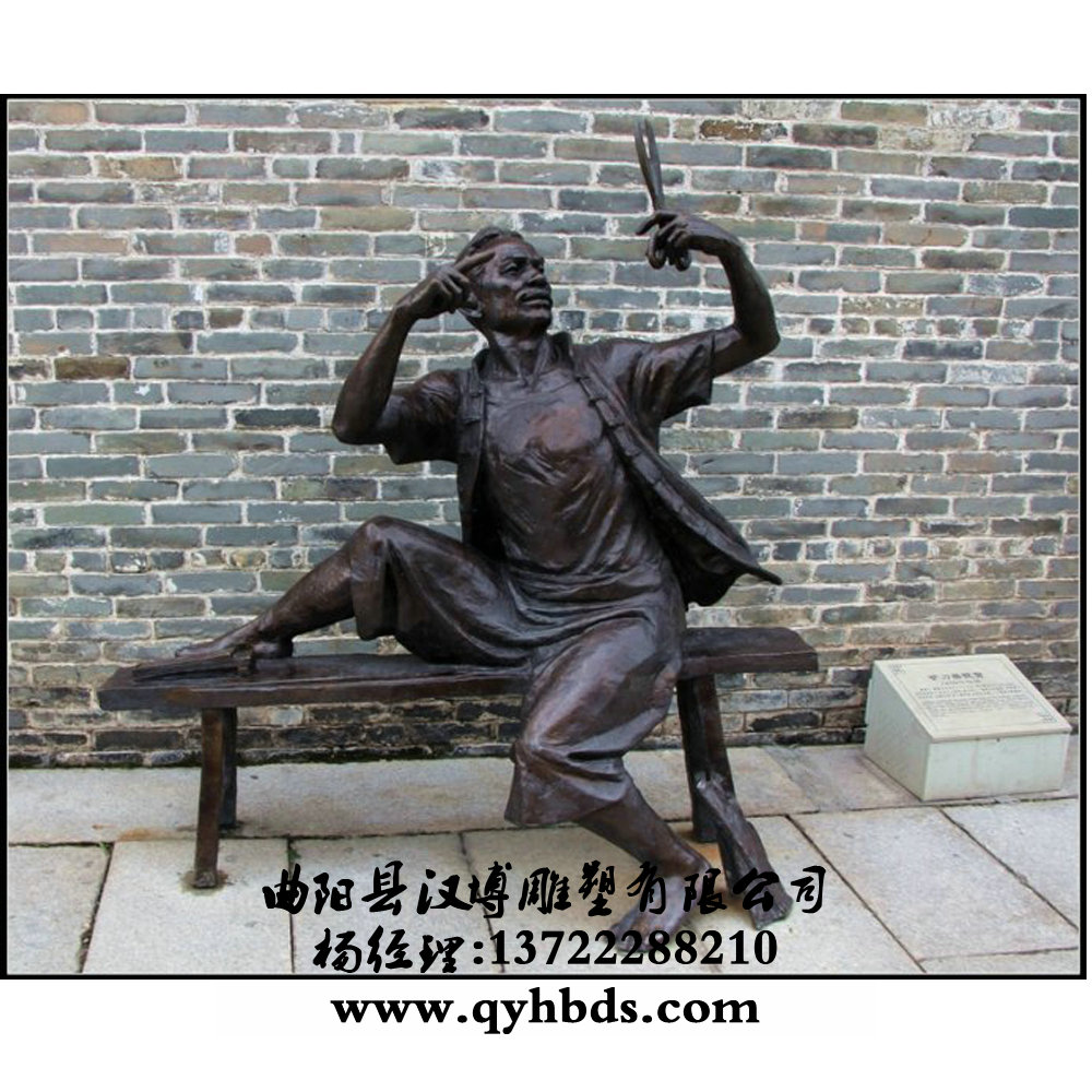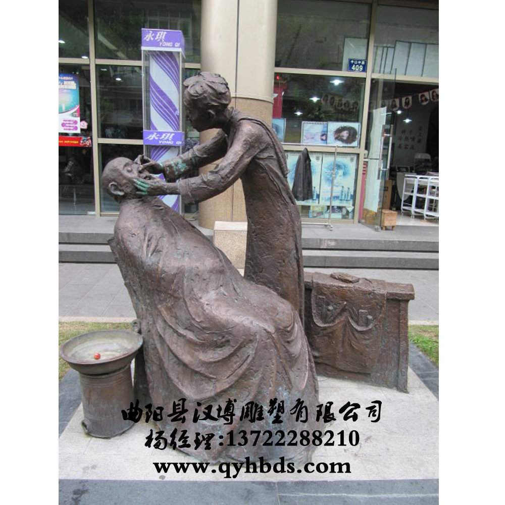 古代人物剪头理发雕塑