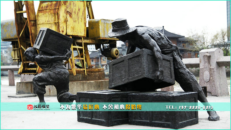 码头文化雕塑,古人物铜雕,搬运工雕像