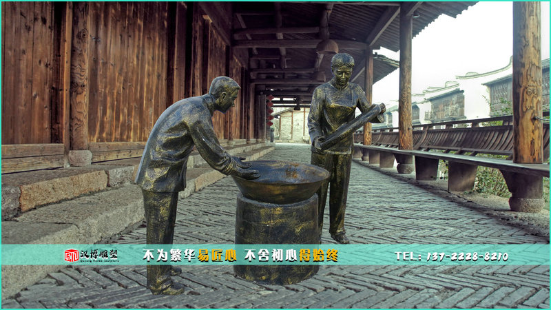 打铁人物铜雕,古人物雕像,铸铜雕塑